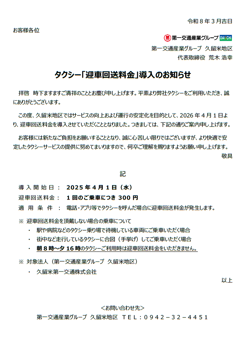 カスタマーハラスメントに対する基本方針について 第一交通産業グループでは、この度、「第一交通産業グループ カスタマーハラスメントに対する基本方針」を制定いたしました。 第一交通産業グループは、「人の生活を大切にする」とい […]